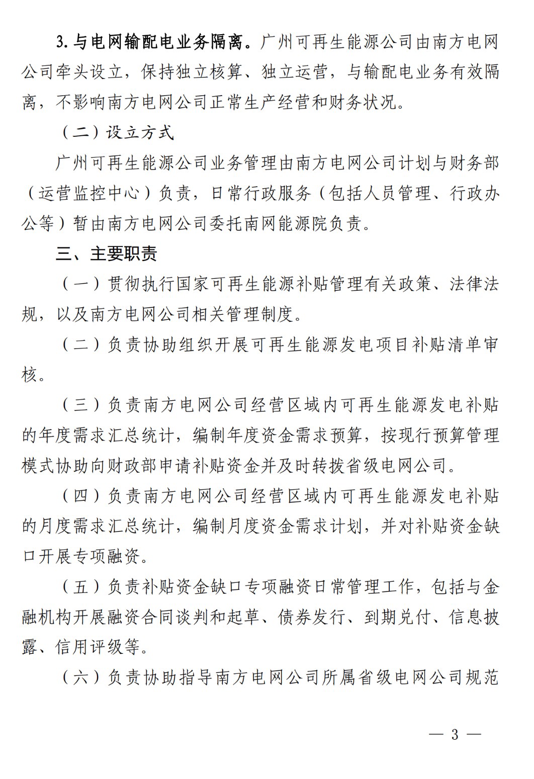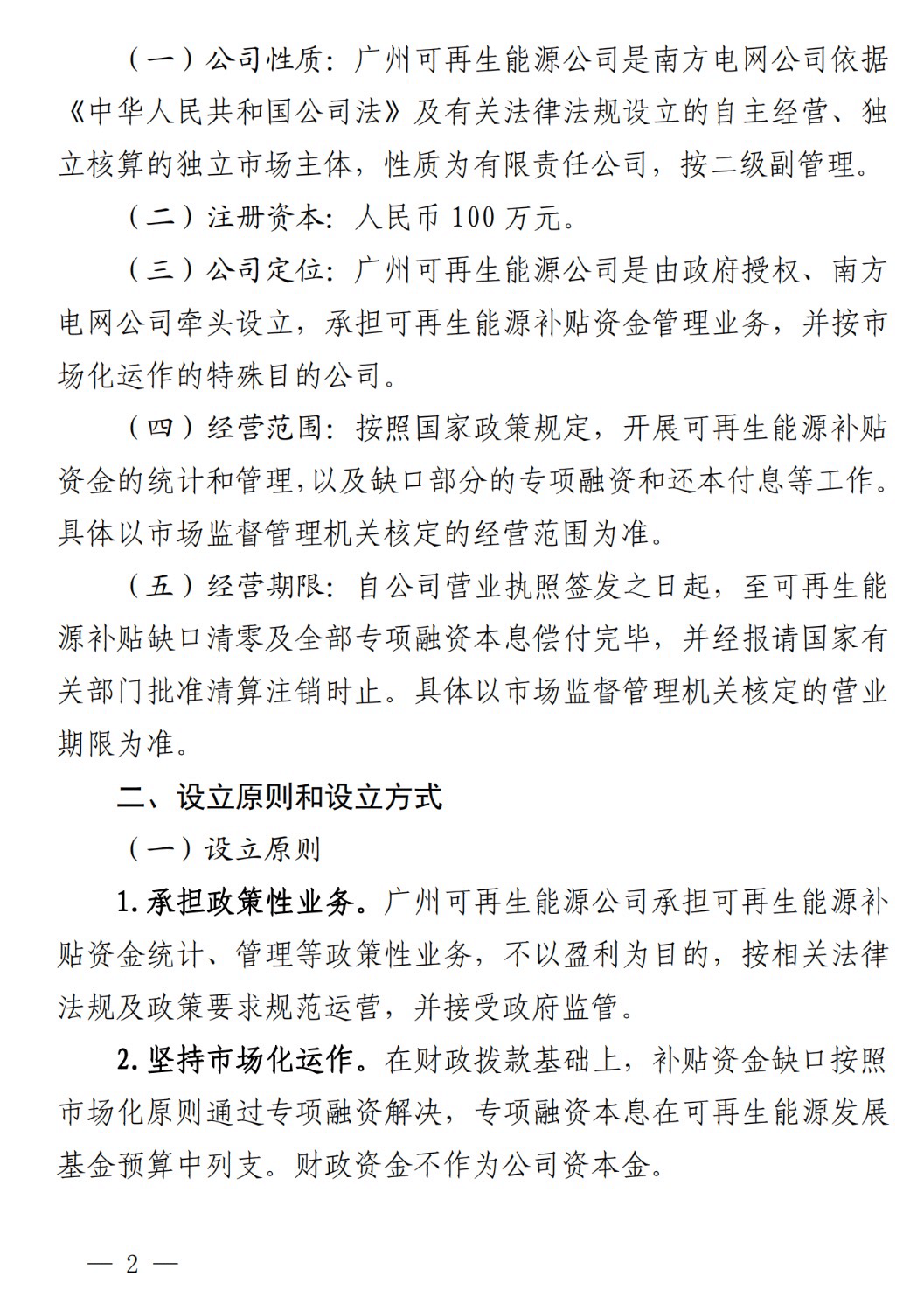 根據(jù)文件,廣州可再生能源公司是政府授權(quán)、南方電網(wǎng)牽頭設(shè)立,承擔(dān)可再生能源補(bǔ)貼資金管理業(yè)務(wù),并按市場(chǎng)化運(yùn)作的特殊目的公司。其設(shè)立原則是承擔(dān)政策性業(yè)務(wù),在財(cái)政撥款基礎(chǔ)上,補(bǔ)貼資金缺口按照市場(chǎng)化原則通過(guò)專項(xiàng)融資解決,并與電網(wǎng)輸配電業(yè)務(wù)隔離。