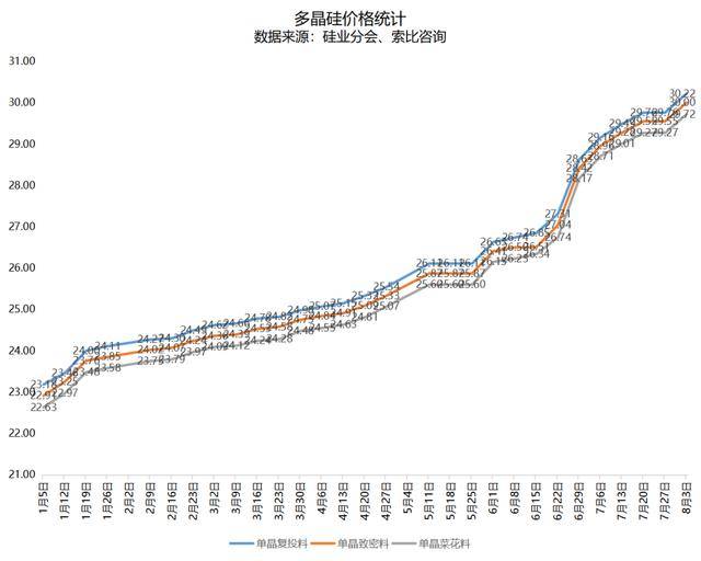 8月3日,中國有色金屬工業(yè)協(xié)會(huì)硅業(yè)分會(huì)公布了太陽能級(jí)多晶硅最新價(jià)格。